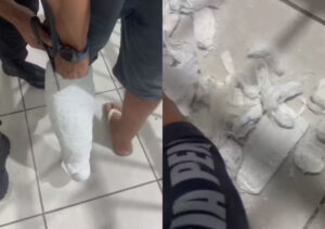 Homem finge estar com a perna quebrada e tenta entrar em presídio com celular e chips escondidos em gesso falso em SC